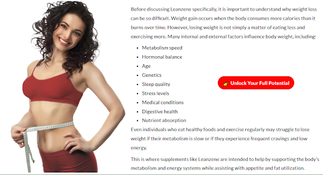 Leanzene is a comprehensive weight loss support supplement that works by improving metabolism, controlling appetite, and promoting fat burning. With its natural ingredients and multi-action formula, it offers a safe and sustainable approach to achieving weight management goals when combined with a healthy lifestyle.